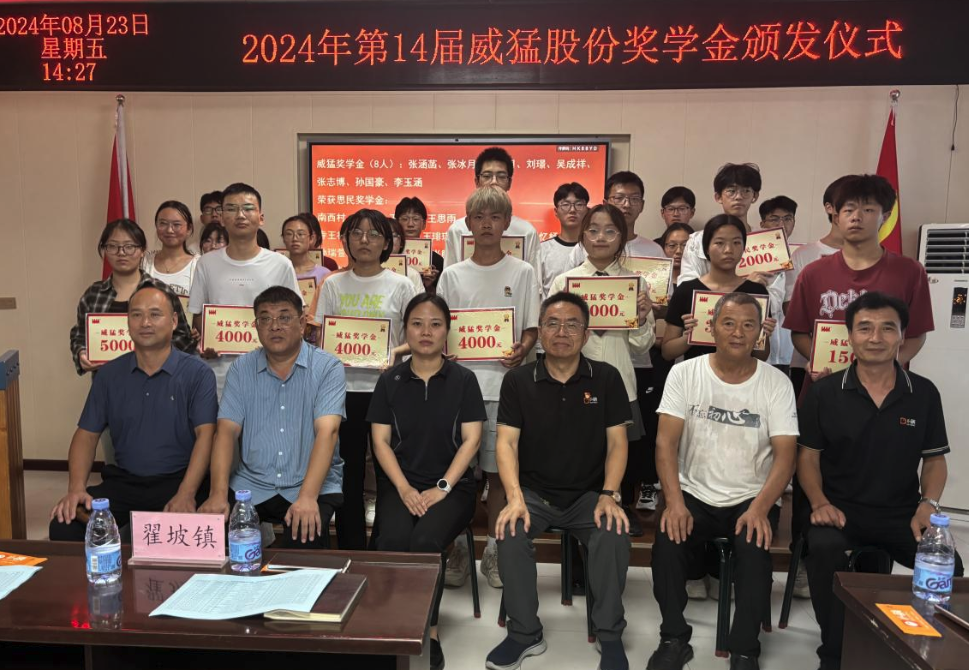 SEE MORE8月23日下午,威猛股份隆重舉行2024年第 14屆獎學金頒發(fā)儀式。參加儀式的主要領導有翟坡鎮(zhèn)黨委書記張寒瑞,寺王村書記王澤平,南東村書記徐興濤,南西村副書記王明保,威猛股份總經(jīng)理...