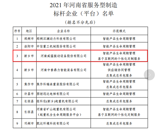 SEE MORE2021年12月31日,河南省工業(yè)和信息化廳公布了2021年河南省智能制造服務型制造標桿企業(yè)名單,共評選出10家智能制造標桿、9家服務型制造標桿,威猛振動...